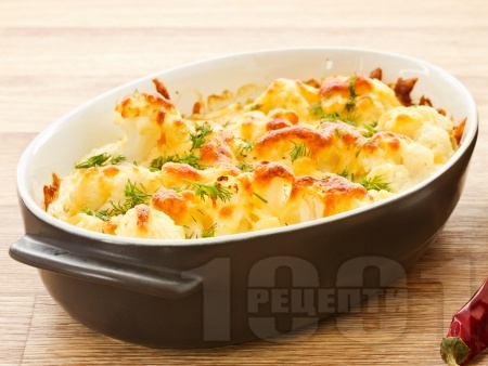 Вегетарианска запеканка от карфиол в млечен сметанов чеснов сос на фурна
