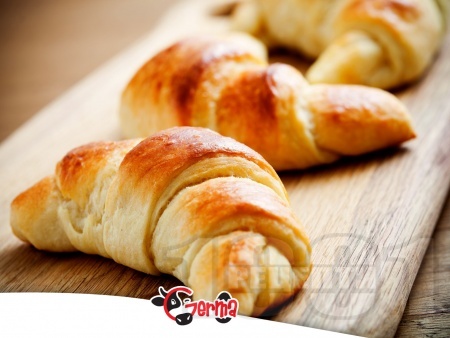 Домашни козуначени кифли с мармаладТе се намазват с мармалад с вкус по избор и се завиват във формата на кифли от широката към тясната страна. |