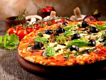 Постна пица с домати, маслини, гъби и кашкавал