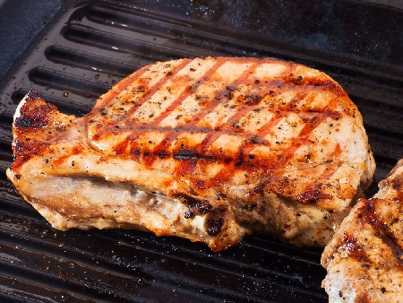 Мариновани карета / котлети с кост от свинско месо (стекове) с марината от мащерка, риган и бяло вино печени на скара или грил тиган