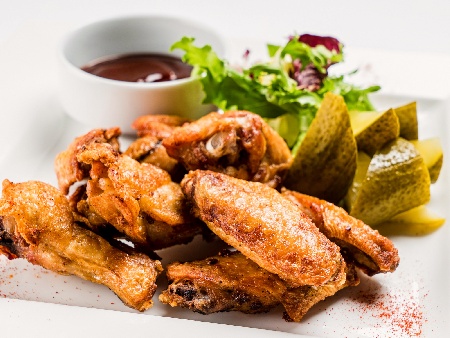 Мариновани пилешки крилца със сос терияки на скара / грил тиган
