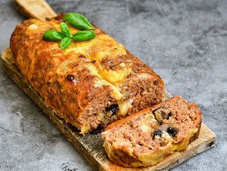 Месно руло с кайма, гъби от консерва и кашкавал на фурна