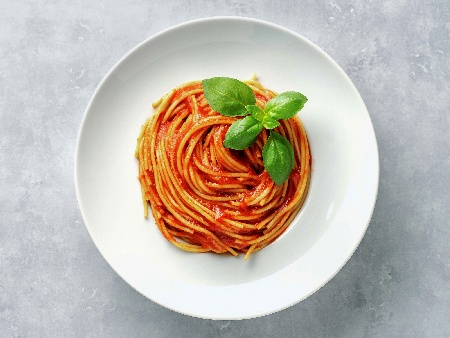 Рецепта:Спагетите се сваряват според инструкциите на опаковката във вряща подсолена вода. В загрято олио или зехтин се задушават нарязаните на ситно лук и чесън. Добавят се накълцаните домати от консерва и доматеният сос. Сосът се овкусява със сол, черен пипер, босилек и чесън на прах. Оставя се да къкри няколко минути, докато се сгъсти. Сварените спагети се слагат при соса и ястието се оставя на котлона за още няколко минути. Спагетите се сервират с листенца пресен босилек. |