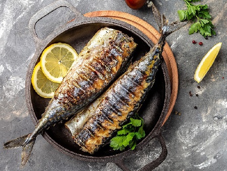 Рецепта:Скумрията се почиства и измива. От всяка страна се правят 3-4 диагонални разреза. Подправя се със сол, черен пипер и лимонов сок. В малка купа се разбъркват подправките и се добавя малко зехтин. Рибата се натрива със сместа и се оставя да се маринова за поне 30 минути. Скарата се загрява и скумрията се пече около 6-7 минути и от двете страни до готовност. |