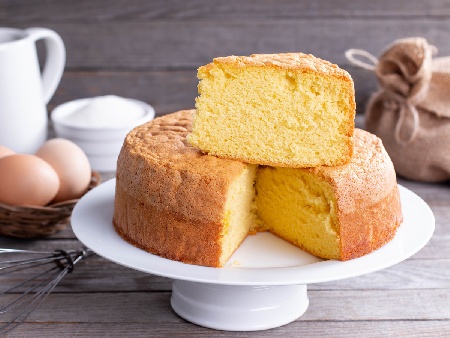 Рецепта:Яйцата се разделят на жълтъци и белтъци. Белтъците се разбиват със щипка сол на твърд сняг. Жълтъците се разбиват със захарта до получаване на побелял и кремообразен крем. Към жълтъчната смес се добавят разтопеното масло, прясното мляко и ваниловият екстракт и сместа се разбърква добре. Брашното се пресява, смесва се с бакпулвера и се добавя, като сместа бърка бавно и внимателно, за да остане пухкава. Белтъците се добавят на няколко пъти към тестото, като отново се стремим да се запази въздушността. Тестото се изсипва във форма за печене, която предварително е намазнена и поръсена с брашно или покрита с хартия за печене. Тортата се пече в предварително загрята фурна на 175 градуса Целзий за около 30–35 минути или докато клечка, забодена в средата, излезе чиста. След изпичане тортата се оставя да изстине във формата за около 10 минути, след което се прехвърля върху решетка, за да се охлади напълно. |