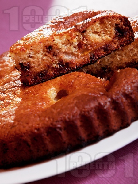 Вкусен и лесен домашен кекс (сладкиш) с прясно мляко и пресни праскови (с бакпулвер или сода)