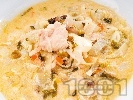 Пиле фрикасе със сметана, гъби, чесън и червен пипер