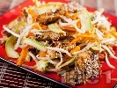 Зеленчукова салата с пилешко месо от гърди (филе), тиквички, сусам и кълнове по китайски