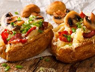 Пълнени гъби кладница с кашкавал и беконПекат се в намаслена тава. |