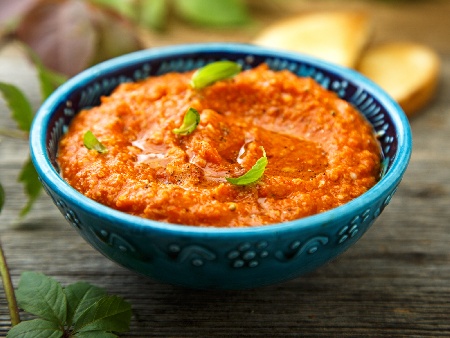 Салата хумус (пастет) с нахут, печени чушки, сусамов тахан, чесън, кимион и магданоз (без тахан)