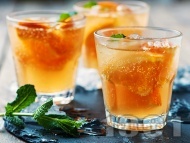 Коктейл Бронкс (Bronx) с джин, вермут и портокалов сокСервира се в чаша за мартини и се декорира с резен портокал и коктейлна черешка. |