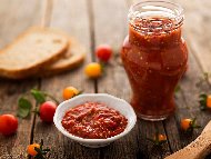 Оригинална рецепта за домашна лютеница на баба в тенджера с червени печени чушки и доматиДоматите и чушките се смилат... |