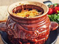 Печено пилешко филе в глинено гювече или гърне с гъби, картофи и къри на фурнаПоставя се във студена фурна и се пече за 30-40 минути на 180 градуса....Гъбите се нарязват четвъртинки, а чушките и лукът на малки кубчета. |