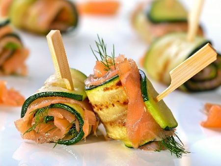 Руло от тиквички с плънка от крема сирене и пушена сьомга